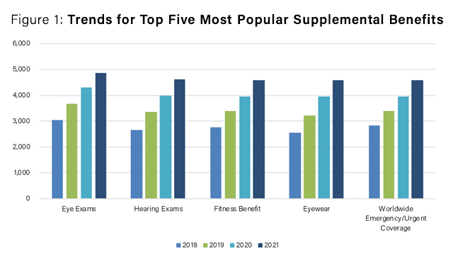 | Table 1: Eight Most Popular Supplemental Benefits for 2021 | ||